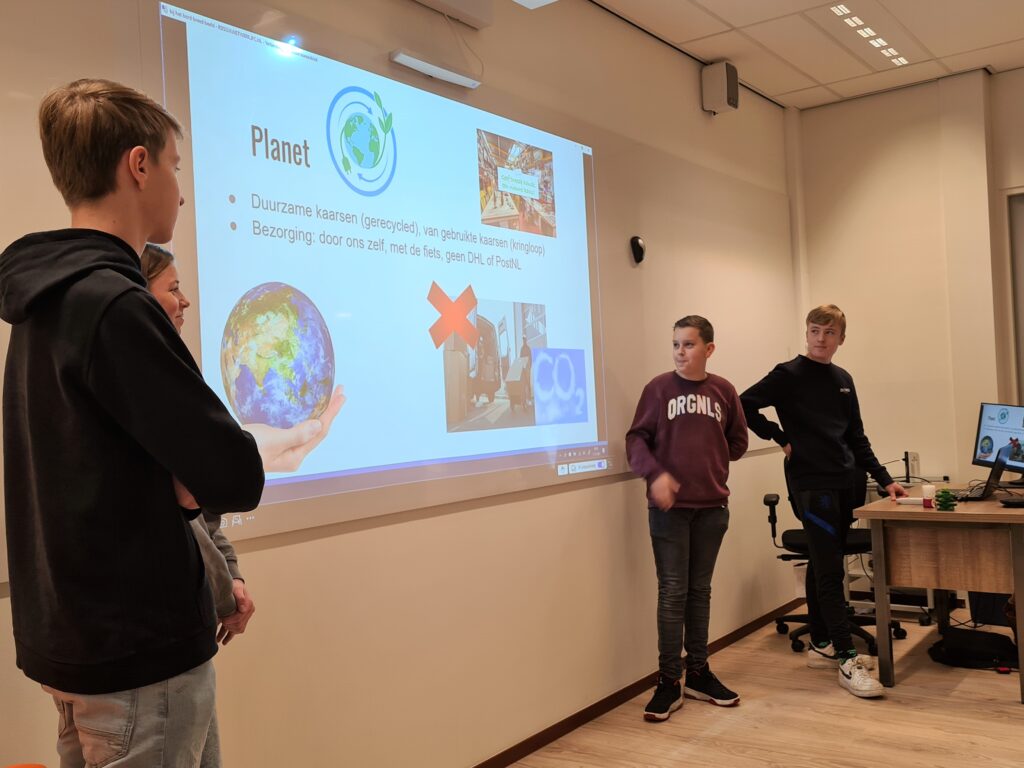 “Yessss!” klinkt het achterin de speciale (college-)zaal van het Johannes Fontanus College in Barneveld. De jonge ondernemers van PlanetProofChristmas hebben een microkrediet van 15 euro gekregen van de Rabobank Gelderse Vallei. Hiermee kunnen ze volop aan de slag met de productie van kaarsen van restmateriaal. Met hun enthousiaste pitch, de voorbeeld-kaarsen en demonstratie van hun website wisten Jort, Bart, Julian en Marit uit Havo-3 de jury snel te overtuigen.
